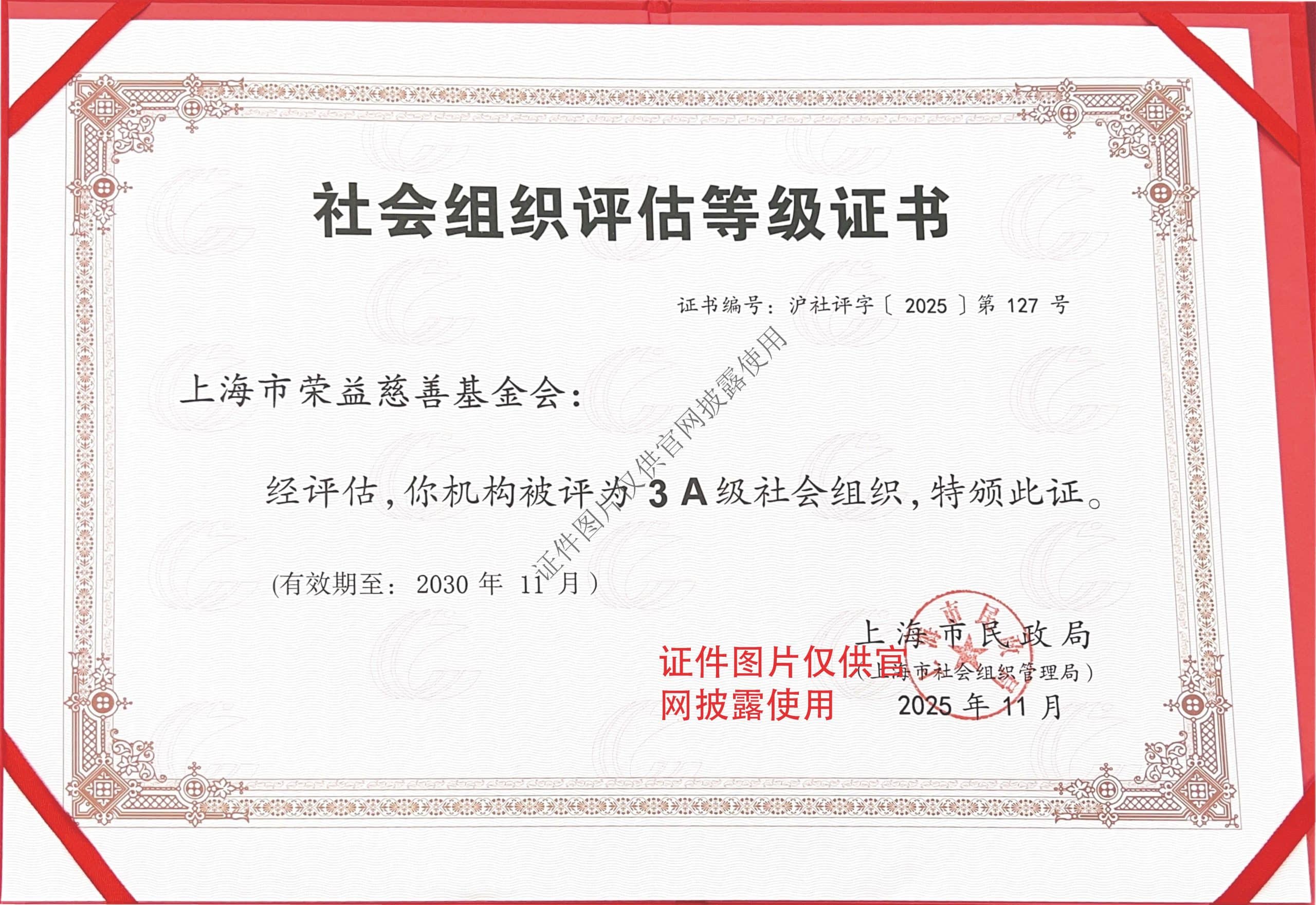 基金会法人登记证书 3A等级证书(2025年11月至2030年11月) 3A等级证书 上海市民政表彰感谢信(2022年防疫支援) 上海市宝山区吴淞街道感谢信 上海市荣益慈善基金会具备公益性捐赠税前扣除资格,详情请见官方名单公告→